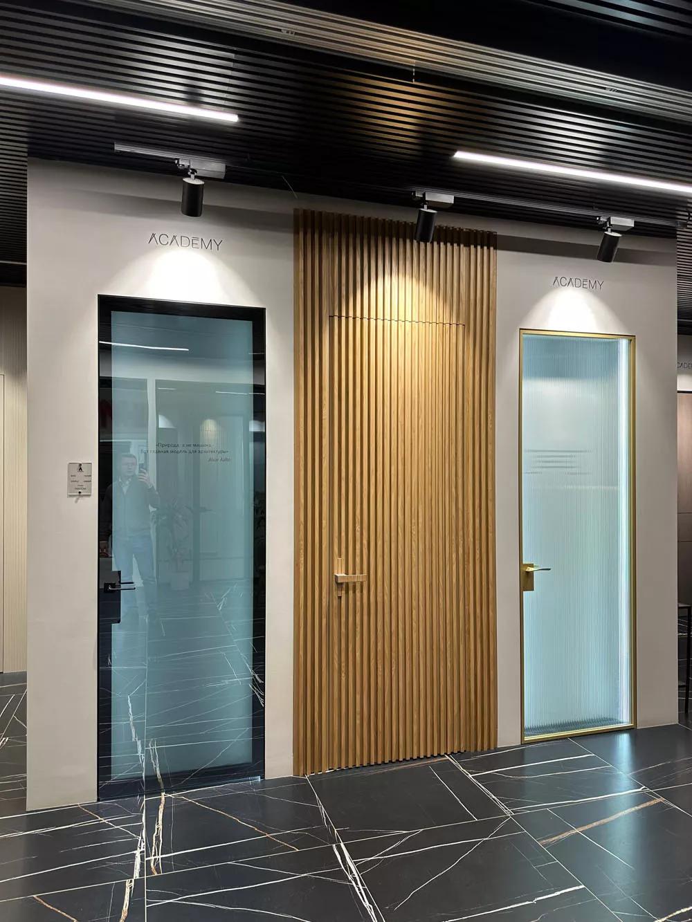 • Премиум: Двери из массива дерева, полотна с керамогранитом, стеклянные конструкции.
