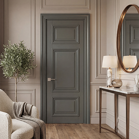 • Монолитные двери: Представляют собой сплошную гладкую панель без каких-либо декоративных элементов. Они идеально подходят для минималистичных интерьеров, где важен акцент на простоте и чистоте линий.